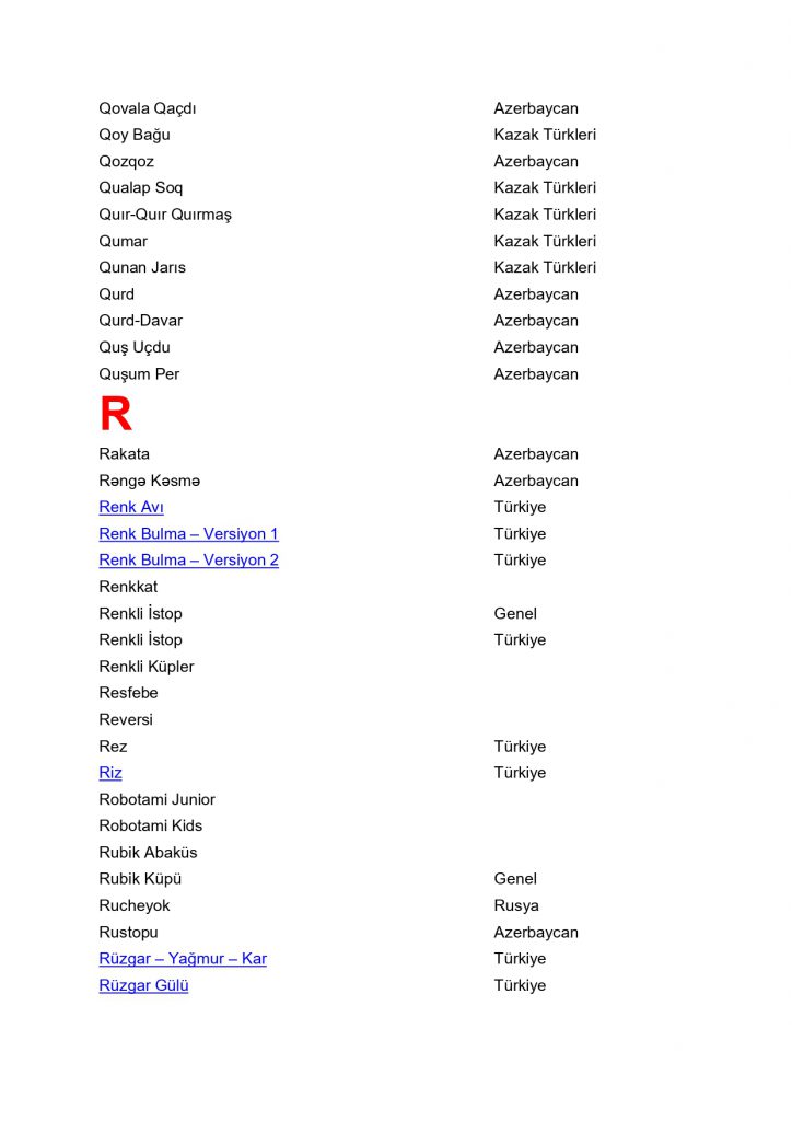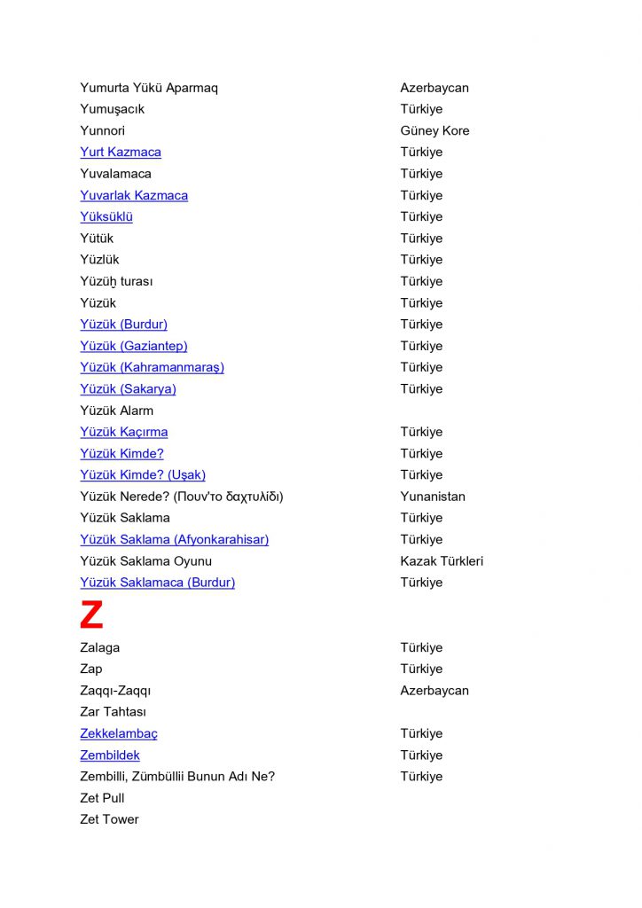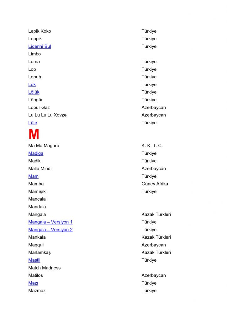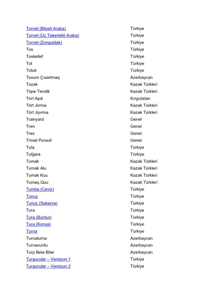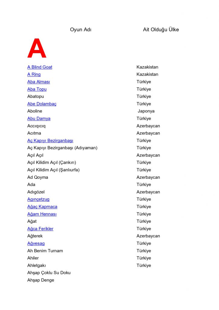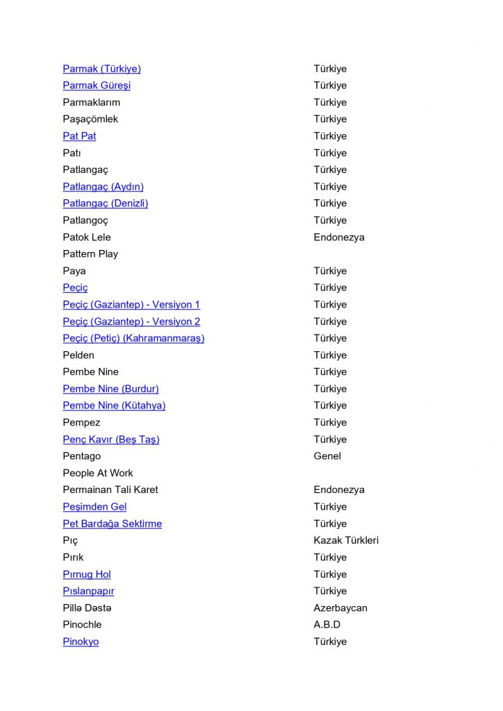 Zeka - Akıl Oyunları / Taş İle Oynanan Oyunlar / Kapalı Alan Oyunları / Masa Oyunları / Malzemeli Oynanan Oyunlar / Oyun