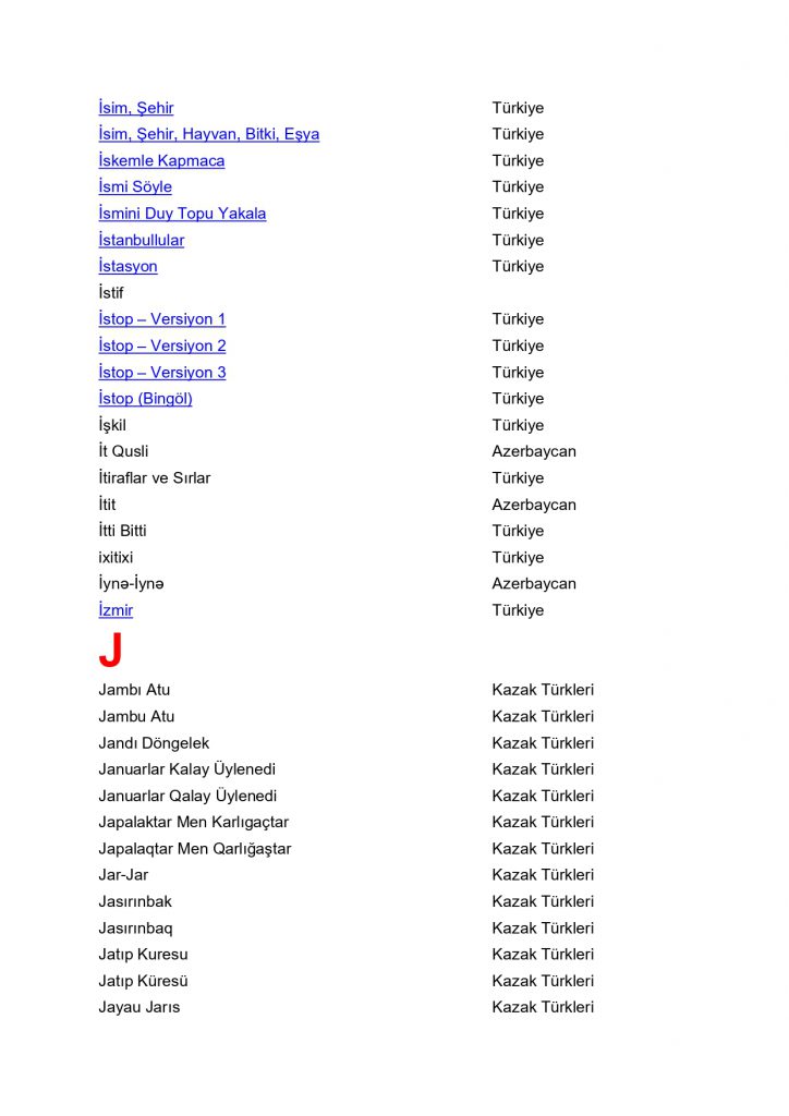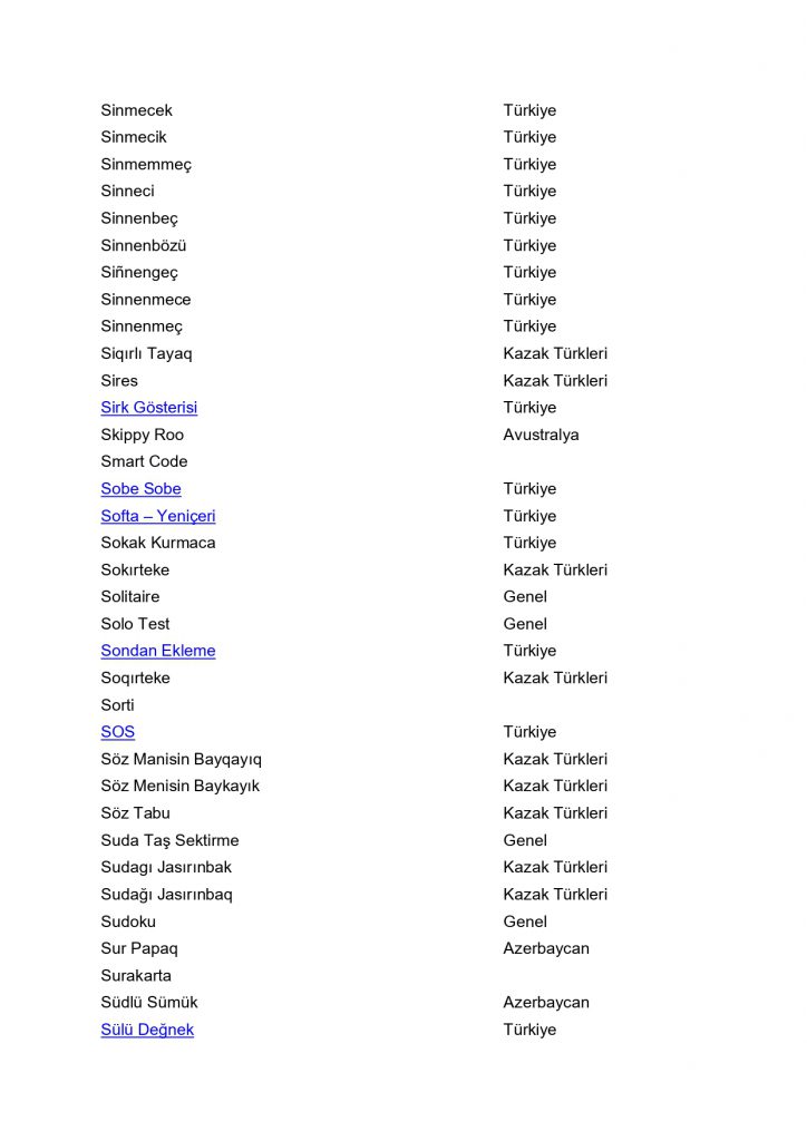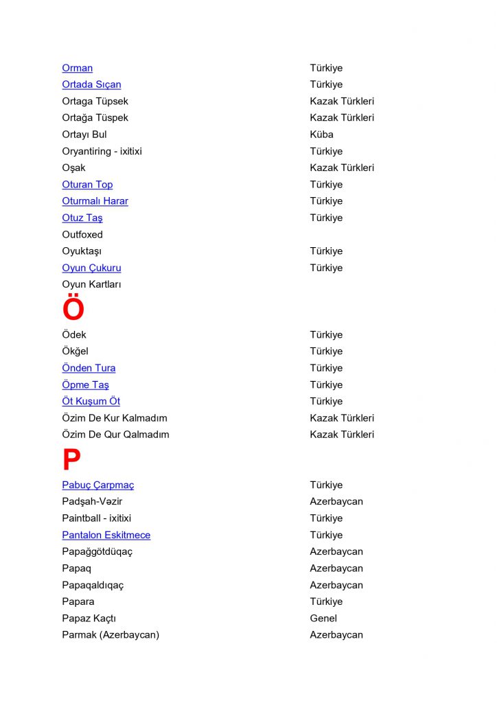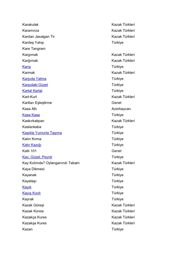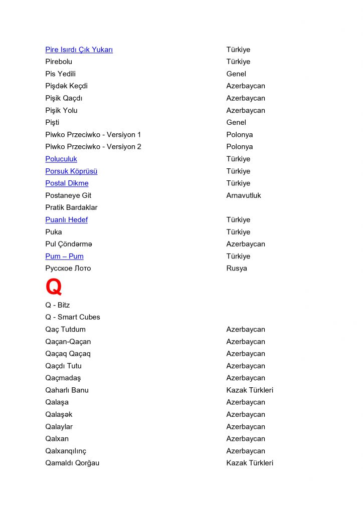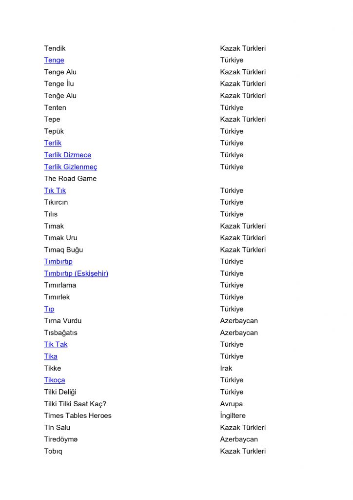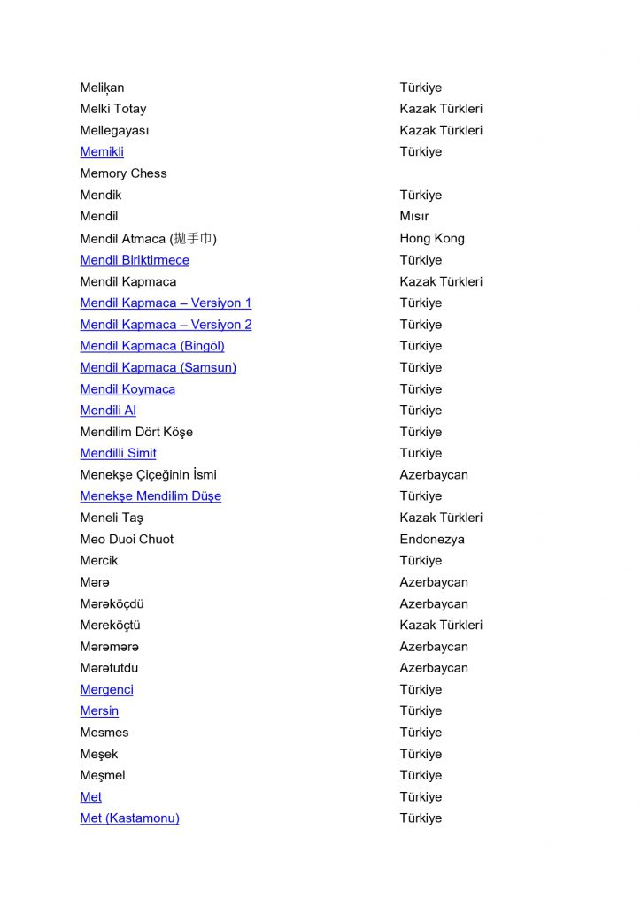 Zeka - Akıl Oyunları / Taş İle Oynanan Oyunlar / Kapalı Alan Oyunları / Masa Oyunları / Malzemeli Oynanan Oyunlar / Oyun
