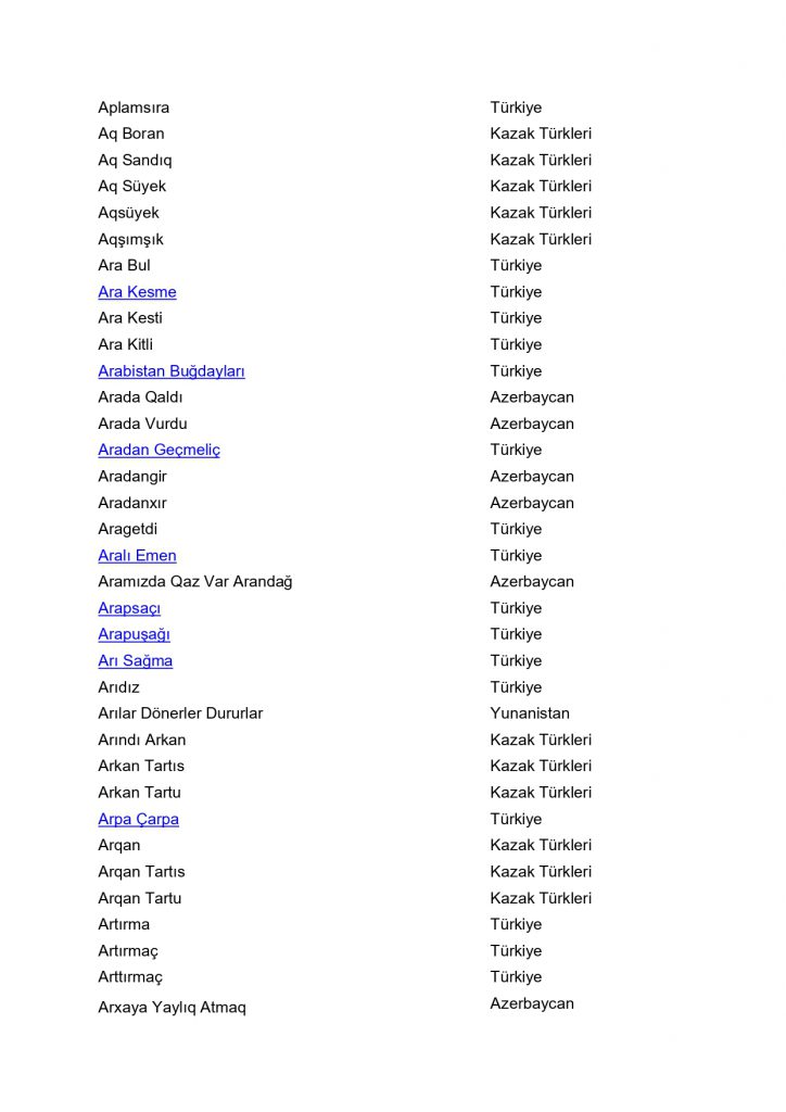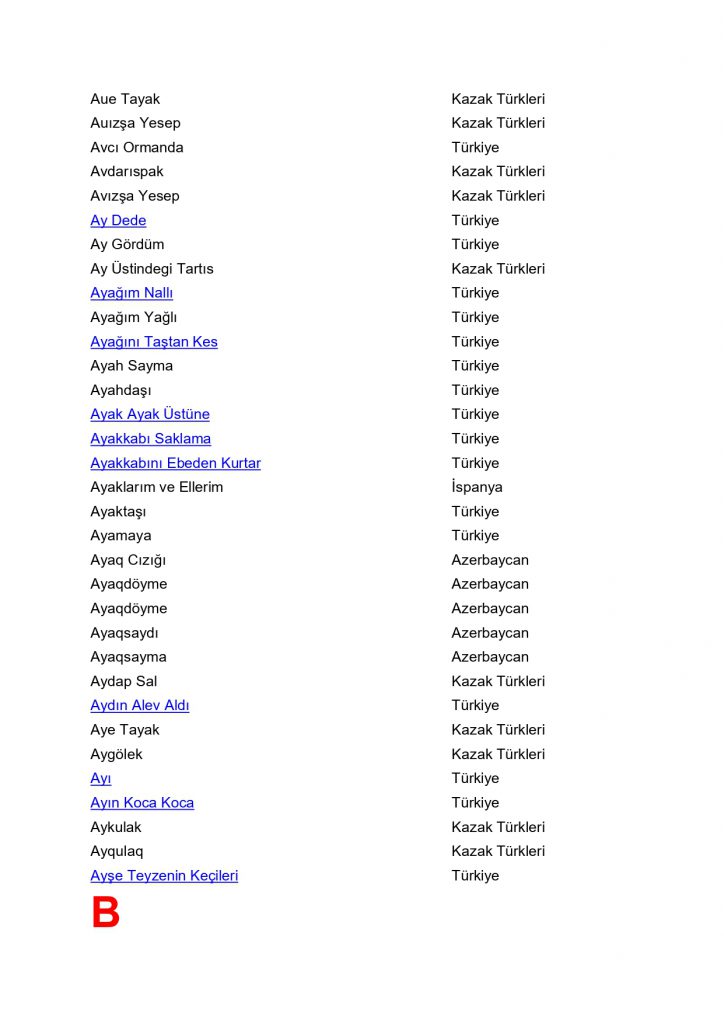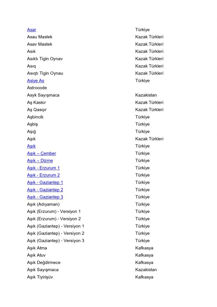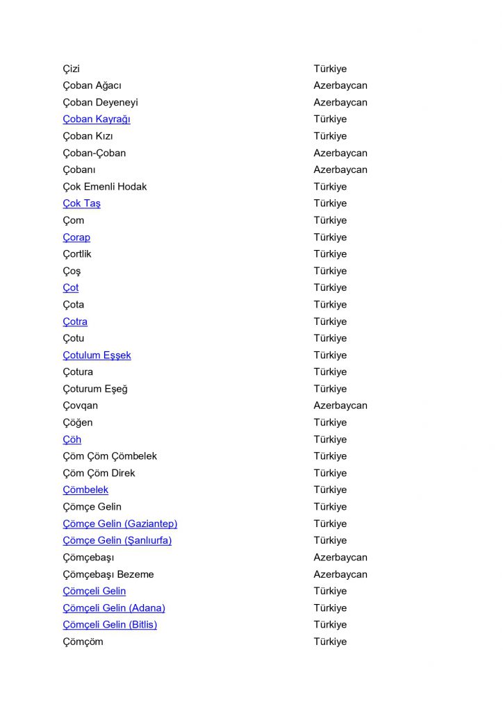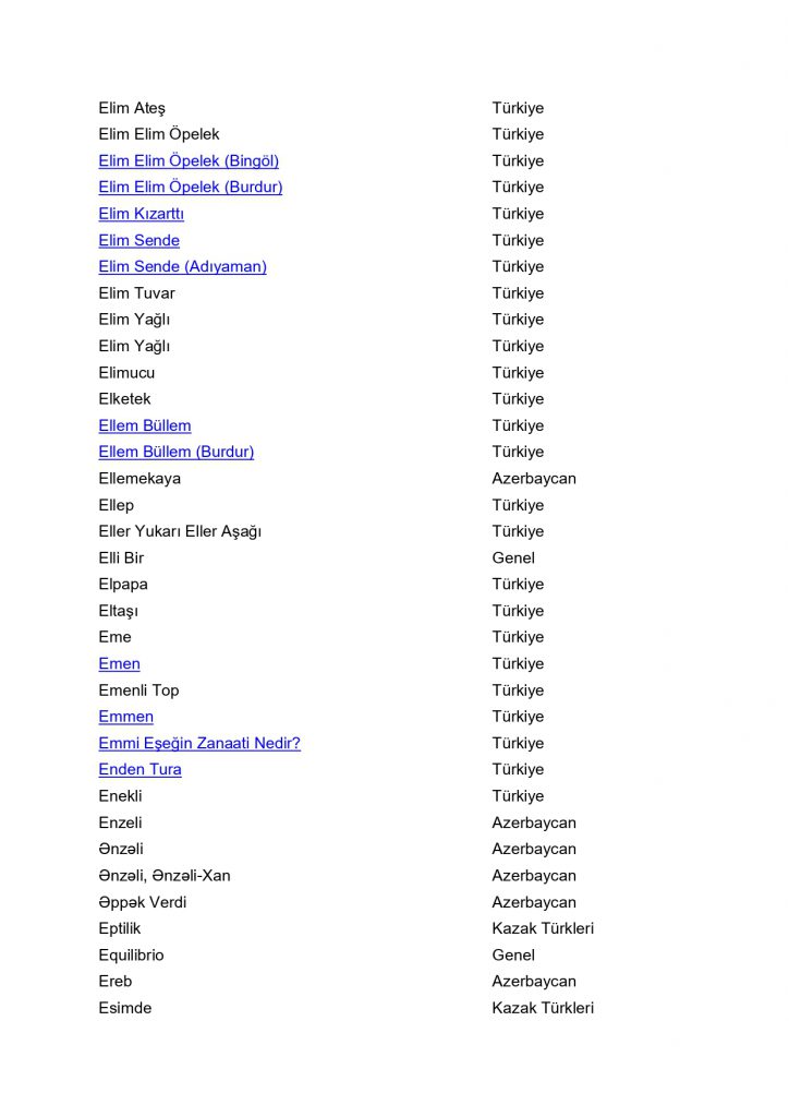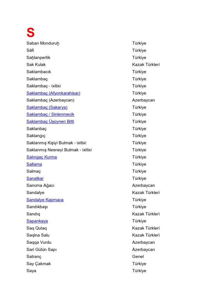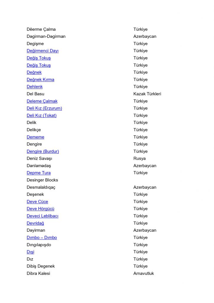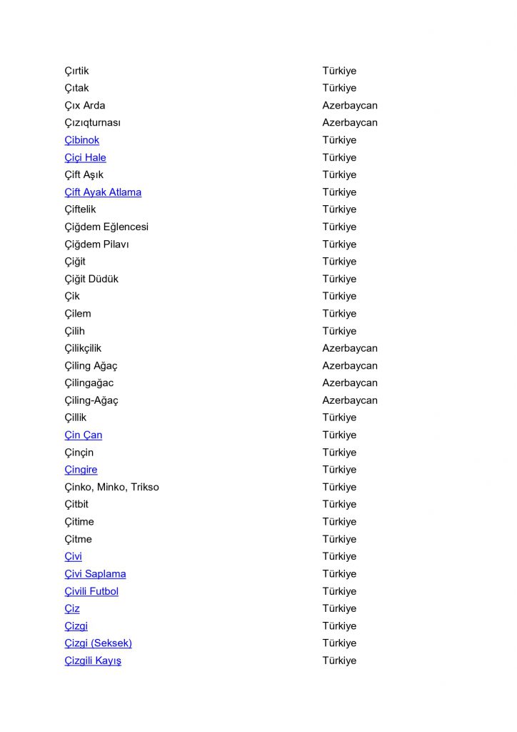 Taş İle Oynanan Oyunlar / Mani ve Tekerlemeli Oyunlar / Malzemeli Oynanan Oyunlar / Açık Alan Oyunları / Oyun