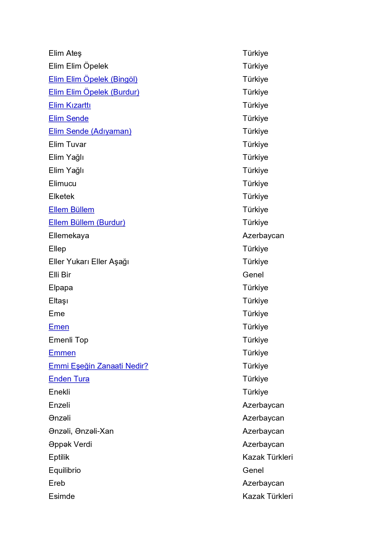 Taş İle Oynanan Oyunlar / Mani ve Tekerlemeli Oyunlar / Malzemeli Oynanan Oyunlar / Açık Alan Oyunları / Oyun