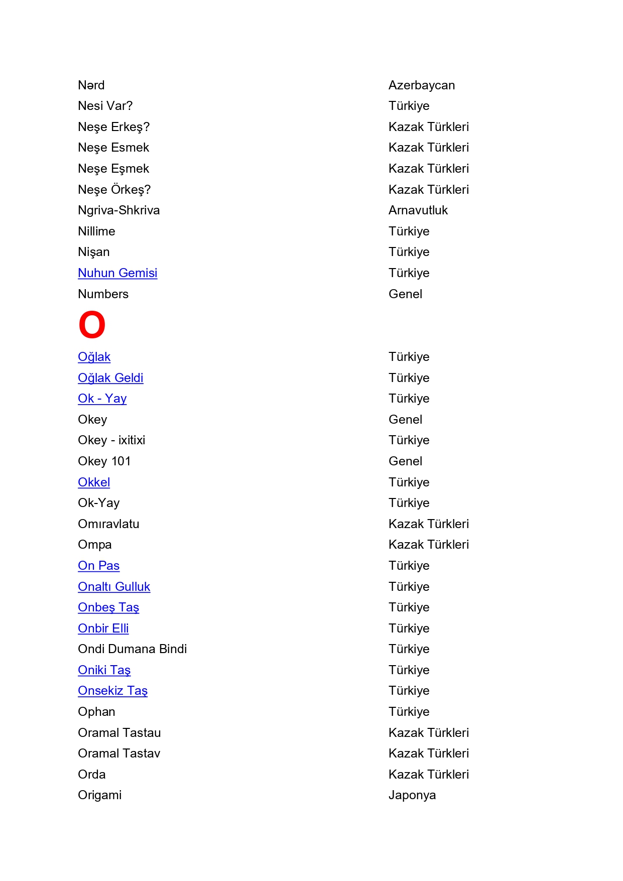 Zeka - Akıl Oyunları / Taş İle Oynanan Oyunlar / Kapalı Alan Oyunları / Masa Oyunları / Malzemeli Oynanan Oyunlar / Oyun