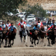 ֍ Belirlenin alanın ortasına yarışa katılan 3-5 yaya ile bir grup atlı genç çıkar.