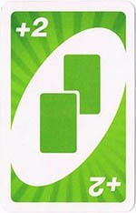 Bu kartı oynarsanız sıradaki oyuncu iki kart çeker. Burada ki kritik nokta o oyuncunun da elinde “İki Kart Çek” kartı olma ihtimalidir. Eğer o oyuncuda oynarsa sıradaki 4 kart çeker. O oyuncuda “İki Kart Çek” kartı varsa ve oynarsa sıradaki oyuncu 6 kart çeker. Bu şekilde sayı katlanabilir.